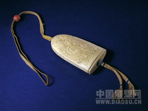 牙雕海水云龙火镰套,长8cm,宽7.2cm,厚4.1cm。