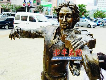 9月27日,记者在闽江二路咖啡茶艺街上,发现一处艺术家雕像一个少了小提琴的琴弓,另一个则少了一只手 。附近工作的安保人员告诉记者,这处雕塑两个星期前刚刚安装好,然而雕塑建起没多久就被人破坏了。