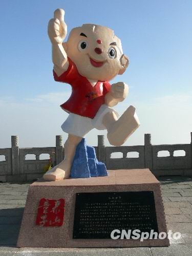 中新社泰安十月二十一日电 (孙弘 韩红梅)在中国第十一届运动会如火如荼进行之际,一尊传承着泰山平安文化和泰山石品格的“泰山童子”雕像,在世界文化与自然遗产泰山顶上的天街安家,并在朝雾夕霞中迎接海内外游客。