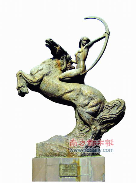 行至雕塑《猛士》前,朱小丹主动停下了脚步,上前细看。“这是改革开放以来最轰动的作品,雕塑界破冰之作!”据介绍,1979年,唐大禧以“文革”中被迫害的女英雄烈士张志新为原型,塑造了这个跪骑在骏马上张弓搭箭的裸体少女作品。