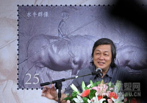 台海网6月22日讯 据香港中评社报道,6月22日,台湾建筑学者李乾朗在发布会上讲解黄土水的作品“水牛群像”。当日,台湾的邮政公司以黄土水的雕塑作品“水牛群像”为主题,发行“台湾雕塑邮票”小型张一张。邮票图案首次采用打凸方式处理,以展现雕塑立体之美。“水牛群像”是一个石膏浅浮雕作品,由台湾雕塑家黄土水于1930年所完成,是台湾美术史上相当知名的经典杰作之一。