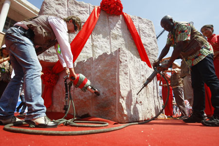 昨日10时30分,伴随着隆隆的礼炮声和满天飞舞的氢气球,两位雕塑家拿起钻机在一块巨石上钻了起来。此举标志着本届雕塑展正式开“凿”。据悉,1997年以来,长春市政府先后举办了11届国际雕塑作品邀请展和两届国际雕塑大会,已经有来自212个国家和地区的400多位雕塑家前来参加了雕塑创作,作品总数达500多件。