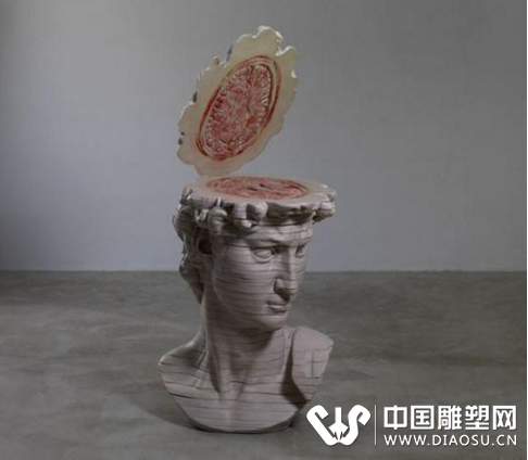 曹辉的被切割雕塑作品见证了经典艺术品被解剖的过程,切下来的肉有块状的、也有线状的,艺术家向我们展示了石头雕塑内部的构造,用超现实主义的艺术手法描绘了雕塑人物的内部组织、肉和大脑。“我们不能仅仅是看到表面,还要能看到内里。”曹辉在一份艺术宣言里说到,“表面和内里的关系实际上是某种完美的逻辑关系,我们都认为这是对的,并用一套又一套理论去证明它,然后再用这套理论去欺骗他人。但结果却是一个笑话,最终我们只是娱乐了自己。”